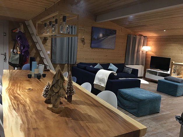 Chalet d'une superficie de 110 m² entièrement rénové, aux couleurs de la montagne et de la forêt.